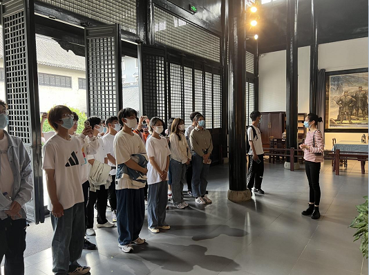 踏入旧址,正殿陈列着陈毅、刘少奇、张云逸、赖传珠、邓子恢等五位将军的铜像,讲解员动情地讲述了他们当年临危受命、运筹帷幄、决胜千里的激动人心的革命故事。同学们分别参观了藏经楼、司令部、军工部、供给部、财经部、卫生部等机构,了解了各大部门在抗战时的作用和做出的巨大贡献。