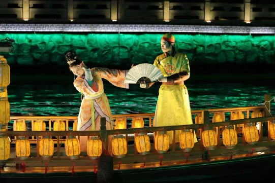 舞蹈学216班郭可一等同学参加2025年大型沉浸演艺的古运河夜游项目——“大运扬州”古运河行进式游船演艺,参演剧目《游船水秀》。