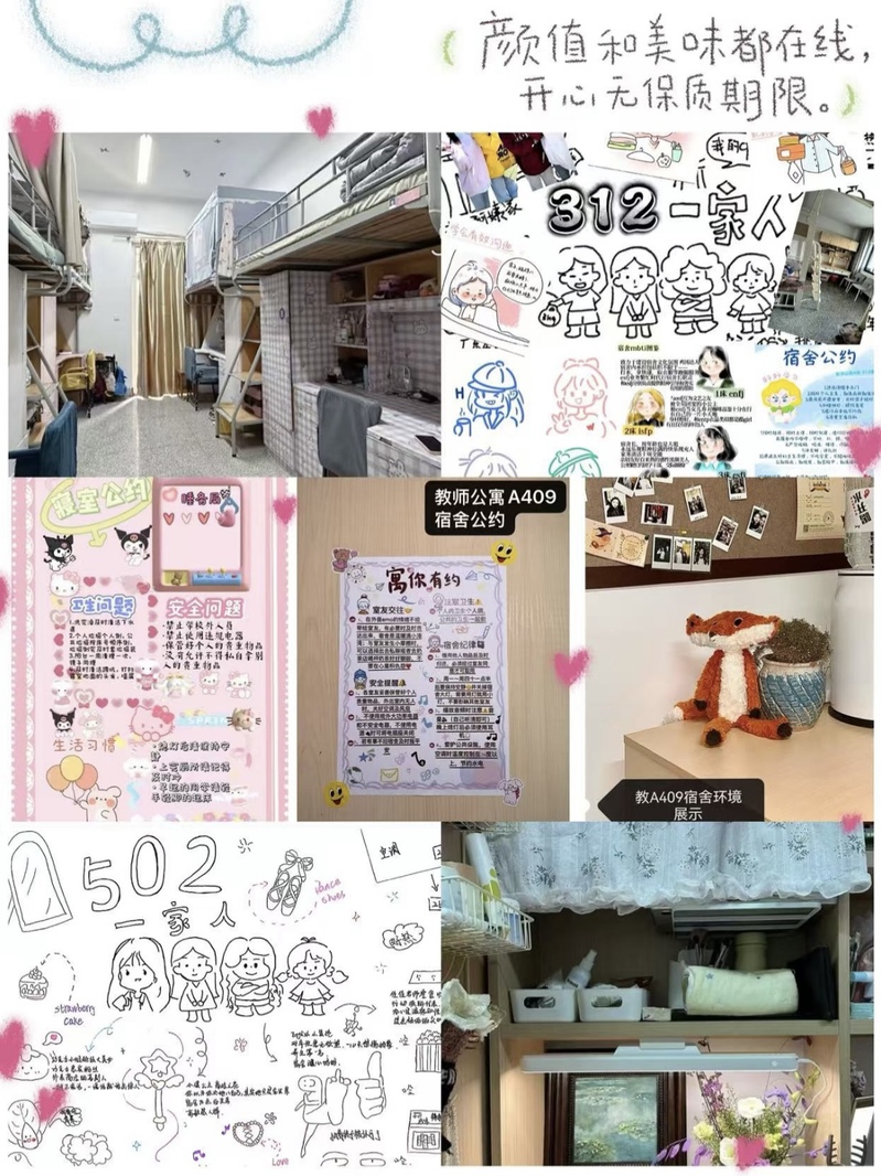 自活动开展以来,同学们以“公约共制、文化共融、空间共创”为主线,围绕作息时间安排、学习氛围营造、行为规范养成、安全教育等内容集思广益、形成共识,设计制定宿舍公约。通过制定特色公约将方寸宿舍转化为彰显个性与凝聚力的“青春会客厅”。每个宿舍还结合生源地、兴趣爱好等为宿舍起名字并提出宿舍口号。宿舍的宣言成为一张张生动活泼的宿舍名片。每个宿舍在做好卫生的基础上适度美化,充分展现富有朝气、别具一格的宿舍个性与风采。各宿舍提交的参赛作品充分展现了必威西汉姆联同学积极向上的精神风貌和对老员工活的美好期盼。